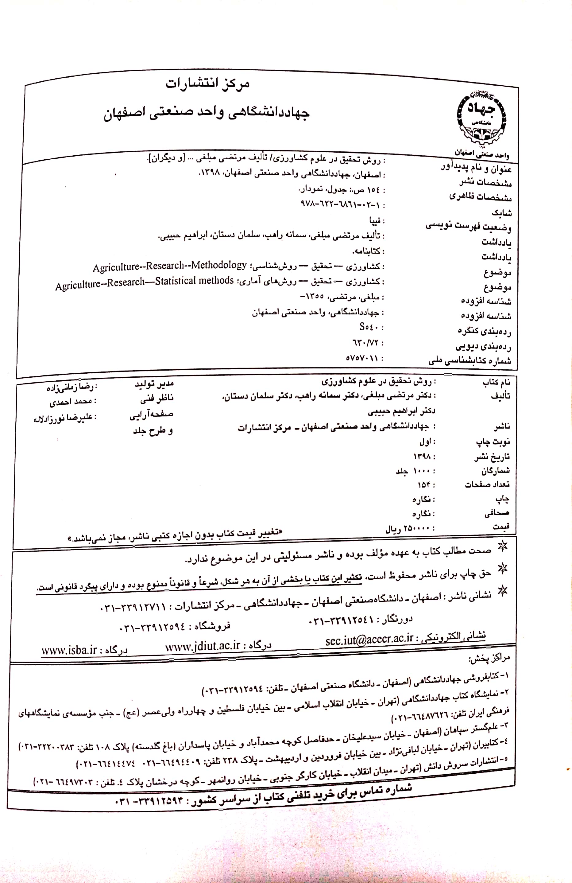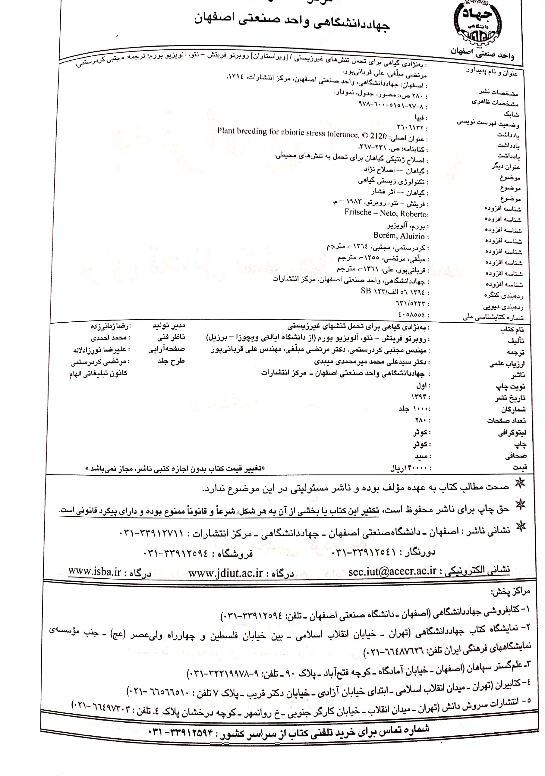 # عنوان 1 فیزیولوژی علف های هرز 2 دیمکاری 3 کشاورزی پایدار 4 زراعت 5 فیزیولوژی گیاهی -