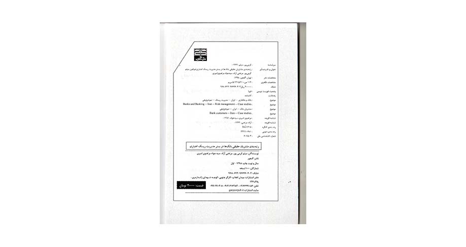 # عنوان نویسنده انتشارات سال انتشار تصویر جلد تصویر شناسنامه 1 رتبه بندی مشتریان حقیقی بانک ها در بستر مدیریت ریسک اعتباری سید جواد مرتضوی، مرتضی آراد، میثم کرمی پور گنجور 1398