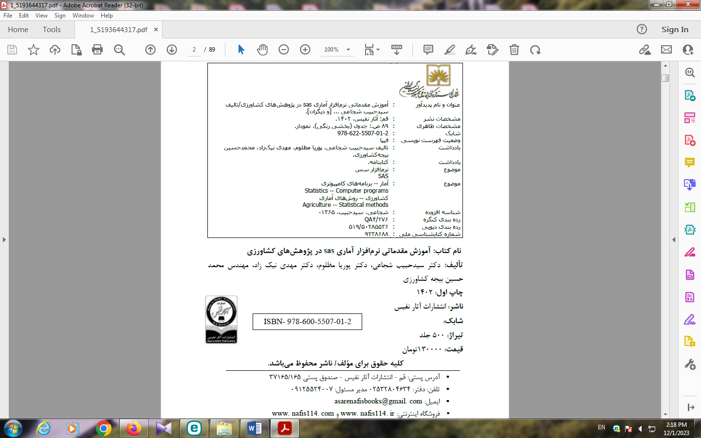نشریه علمی مطالعات پژوهشی در علوم کشاورزی و زراعت |