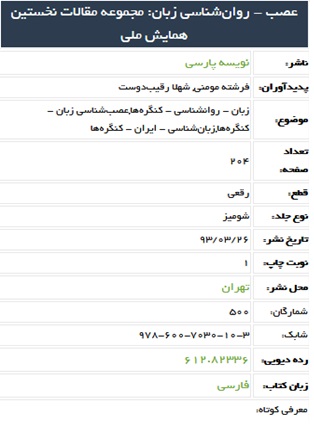 # عنوان 1 عصب-روانشناسی زبان 2 دستور زبان فارسی -