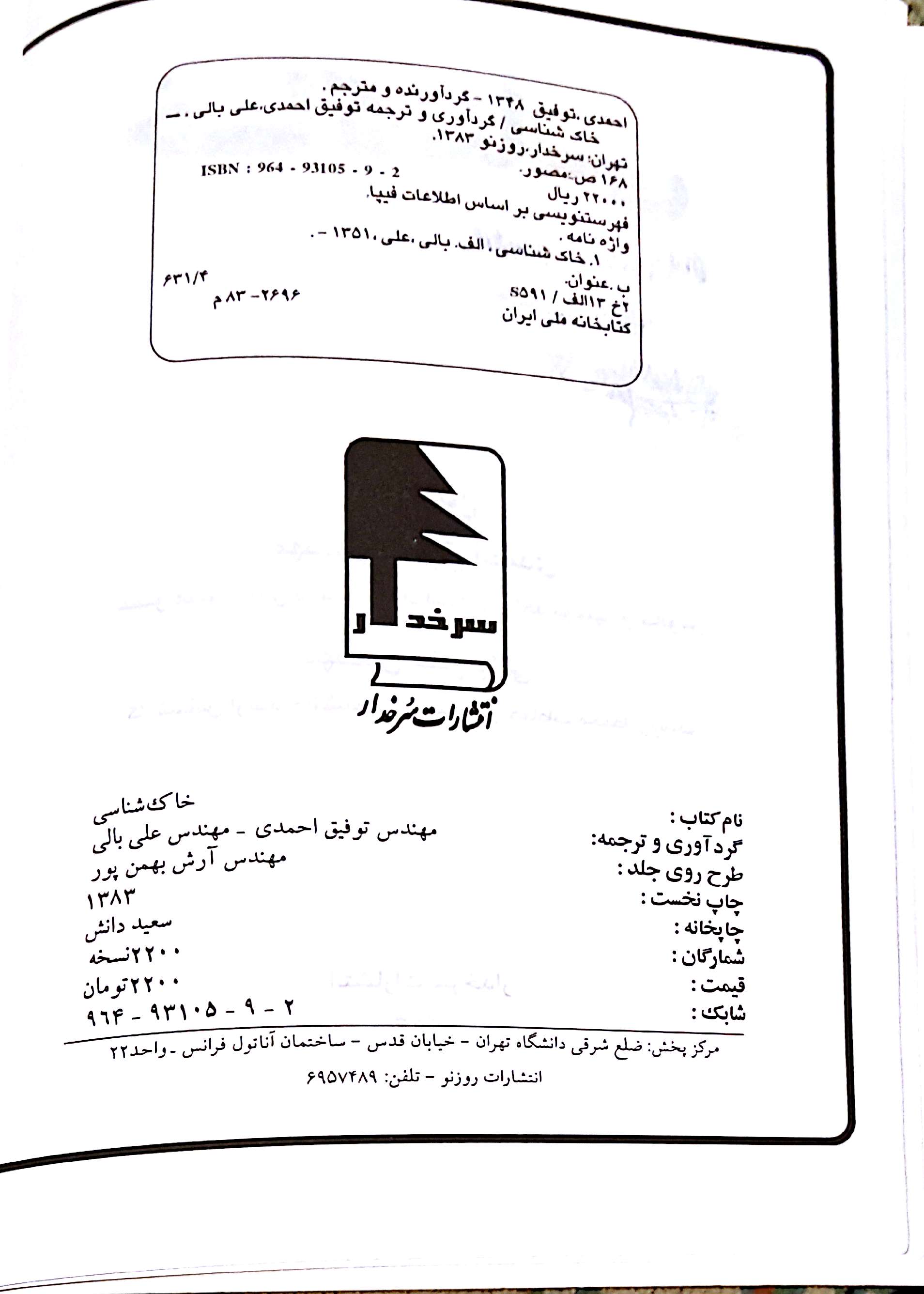 # عنوان نویسنده انتشارات سال انتشار تصویر جلد تصویر شناسنامه 1 خاکشناسی توفیق احمدی و علی بالی سرخدار 1383