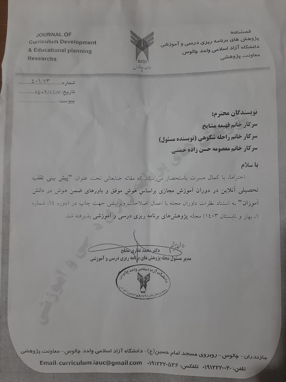 # عنوان مکان بازه زمانی 1 مدرس دانشگاه چالوس سیزده سال -